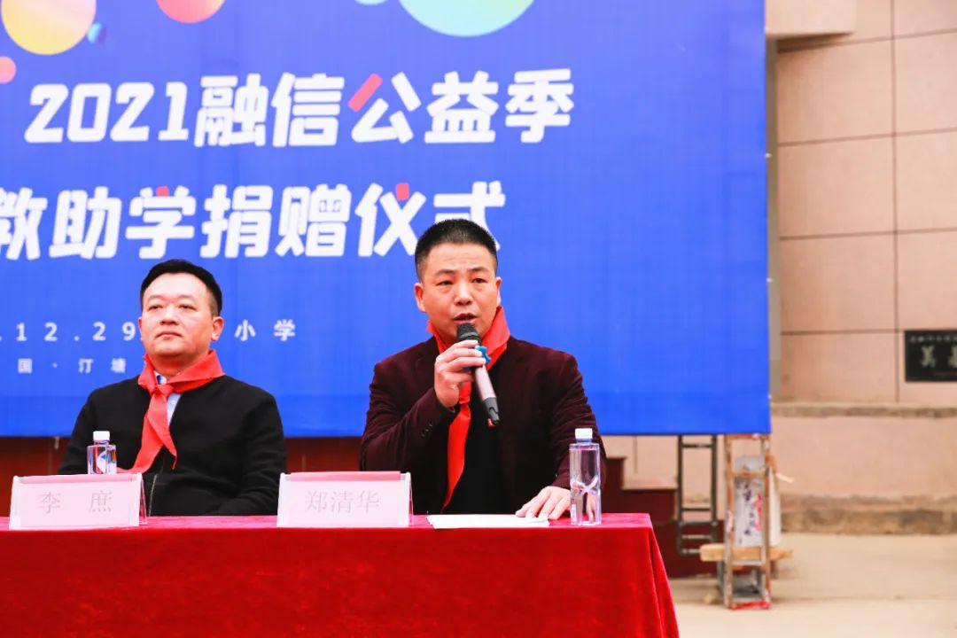 12月29日,融信桑梓奖教助学捐赠仪式于莆田汀塘小学开展,汀塘村书记欧建源、莆田市桑梓公益发展中心办公室副主任李庶、汀塘小学校长郑清华、融信公益基金会名誉理事长许丽香、融信公益基金会秘书长顾鸿飞、汀塘村有关负责同志、融信公益代表、汀塘小学全体师生参加仪式活动。