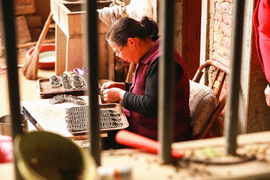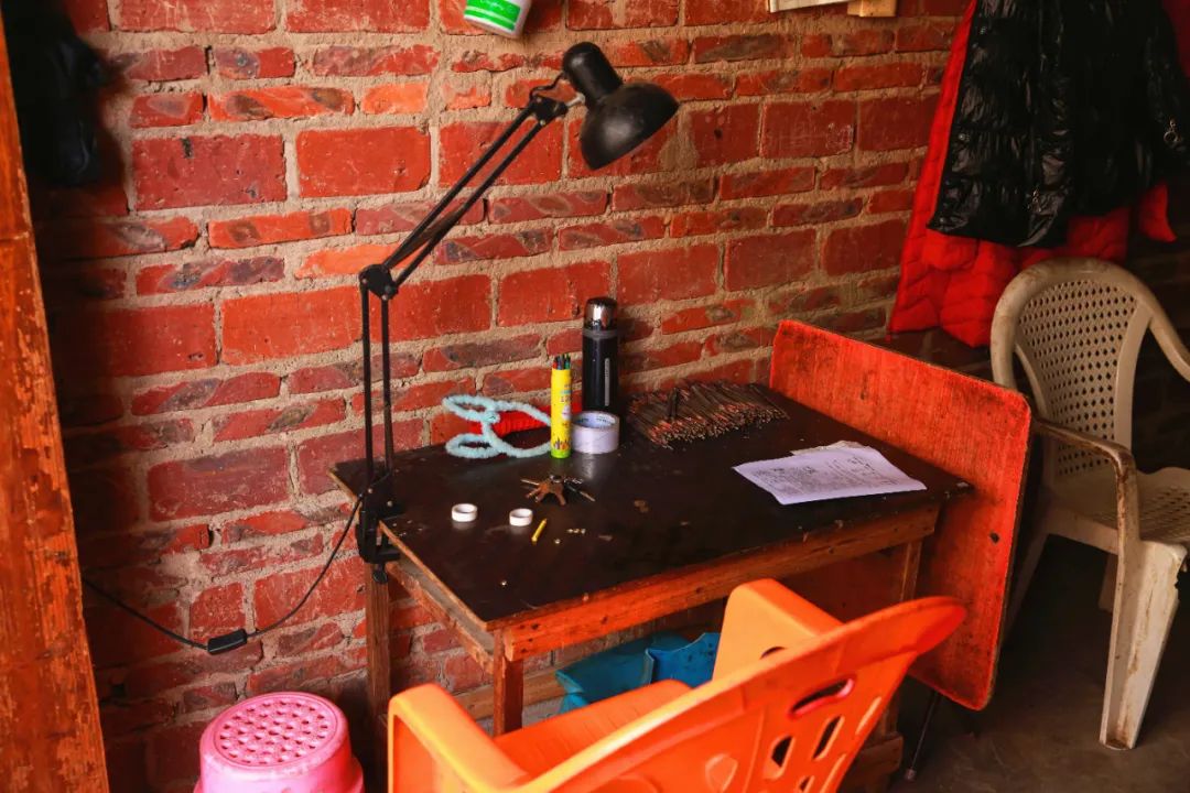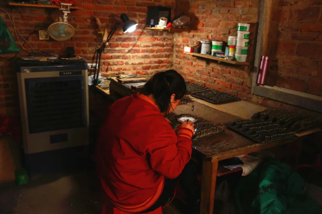 李林(化名)父亲因突发脑溢血患病在家,长期由母亲和自己来照顾,自己的两个女儿都在汀塘小学就读。母亲为了便于照顾躺在床上的父亲,常常会坐在院子里做手工活,因为这样父亲透过窗户就能看到母亲。“平时多的话,一天能加工一千多个首饰,差不多可以挣100块钱”。李林(化名)和妻子没有朝九晚五,取而代之的是朝五晚十一,因为在他们眼里,每做工一天,孩子们未来的发展就更长远了一点。