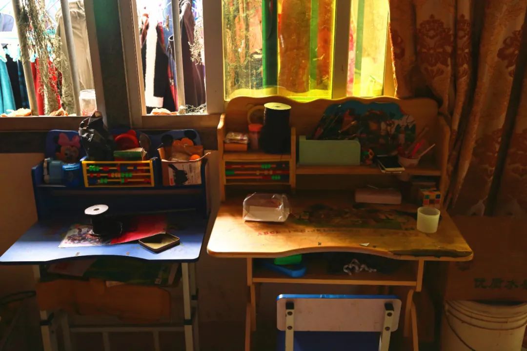 ○ 李林(化名)与孩子共用的书桌/手工桌