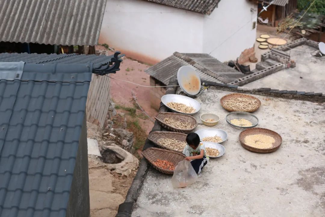 是岔花完小2年级的学生,她的家住在山顶,每次上下学都要走12公里的山路回家,到家的第一件事是去喂养那些“朋友圈”的伙伴们,小小的她要站在板凳上才能喂牛,但也是这个小小的她,能够飞快地跑到屋顶去分拣蔬菜。