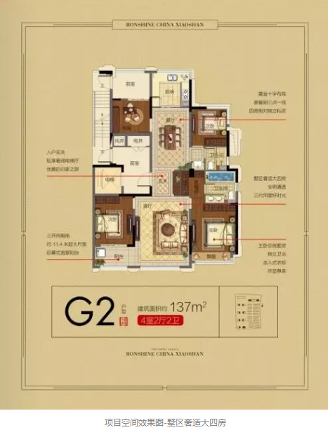 融信·永兴首府全力打造法式经典排屋和瞰景高层,缔造城市生活风范,致敬萧山影响力。今天我们将以建筑面积约137㎡的空间范本,告诉对生活有追求的“您”,在这里实现全生命周期的人居生活体验。